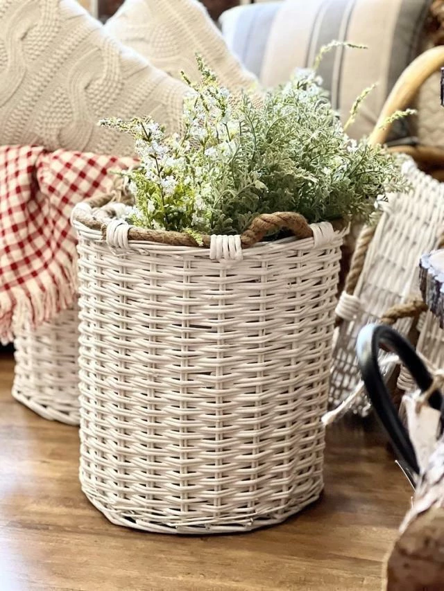 Feita em vime natural, acabamento branco com corda na borda para trazer aquela rusticidade que a gente ama!