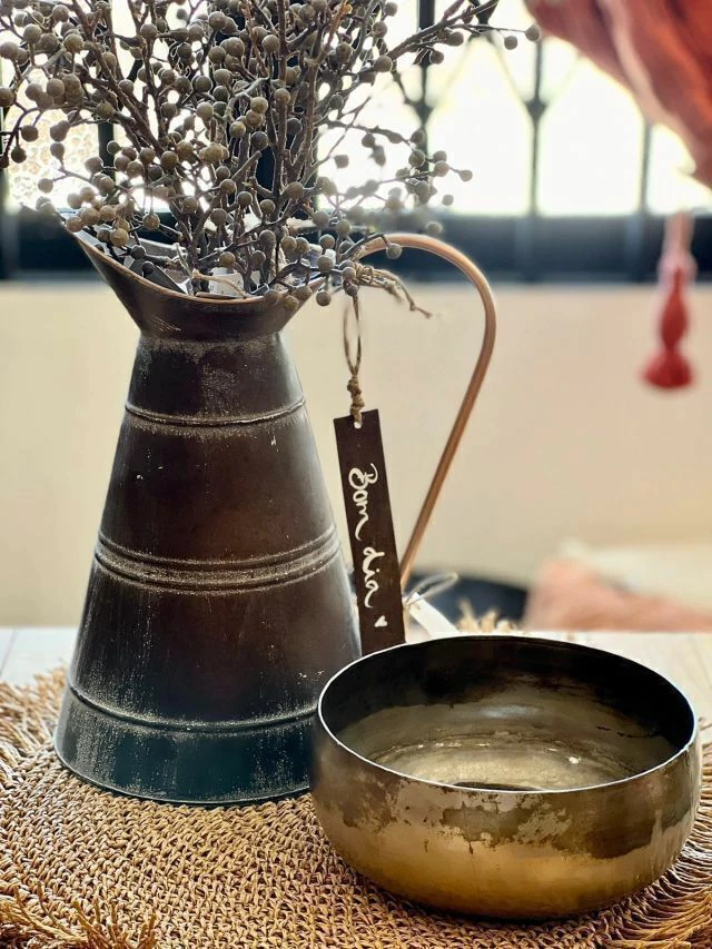 Valor equivalente a uma jarra em metal, não acompanha os itens de decor da imagem, nem a plaqueta em ferro, usados como sugestão de decor!