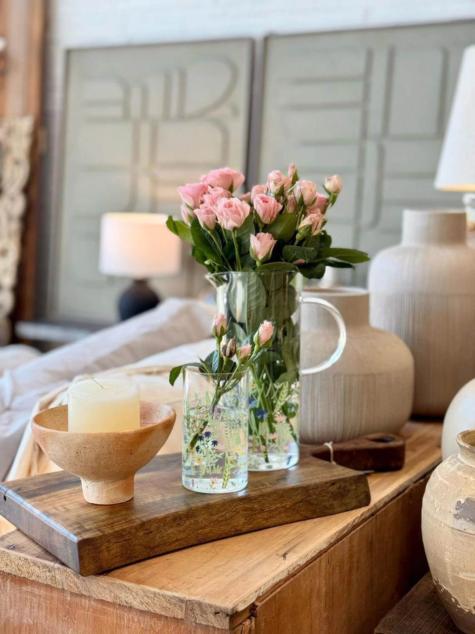 Valor equivalente a uma jarra em vidro. Não inclui os itens de decor da imagem. .