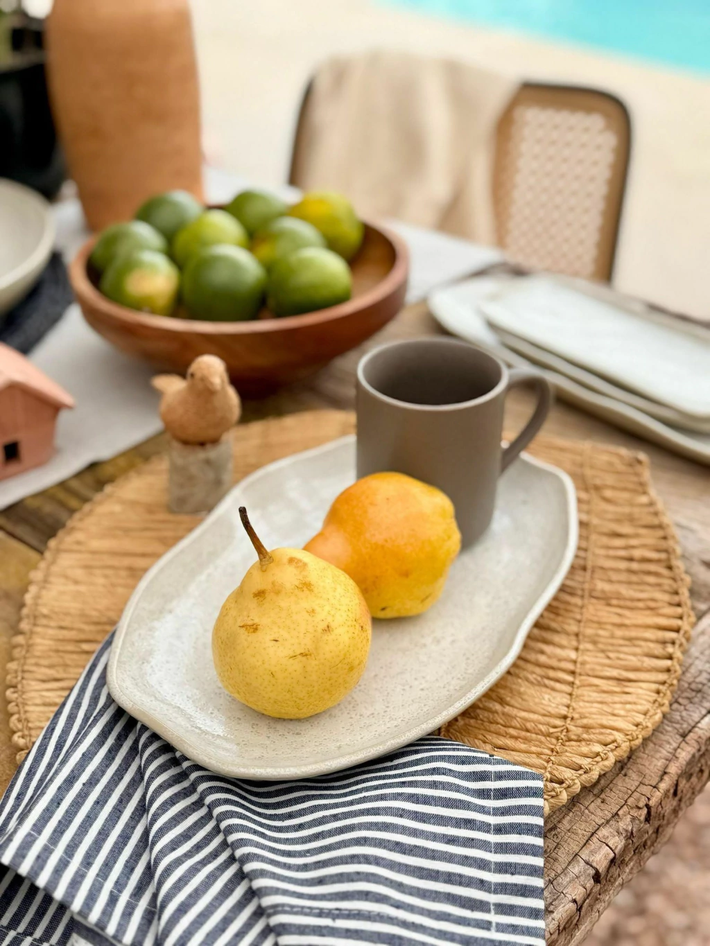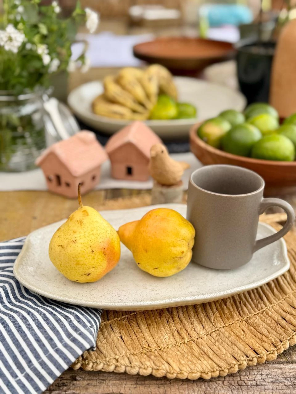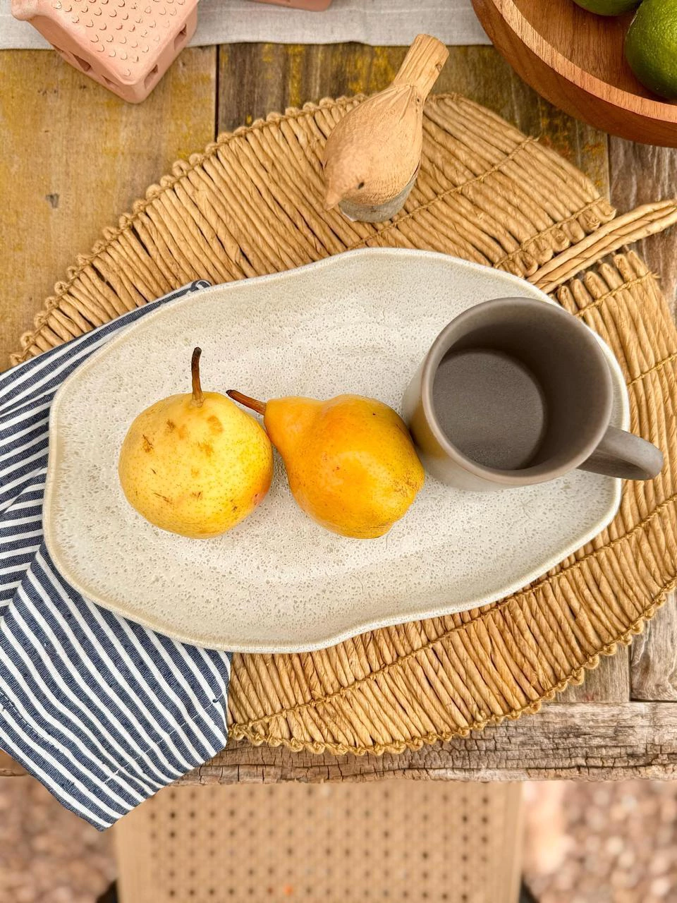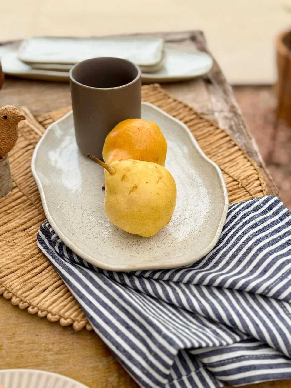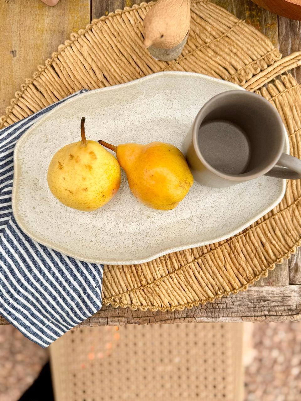Travessa em cerâmica , de uma coleção linda mais orgânica, onde cada peça é única. Todas tem predominante uma cor mais clara com umas "manchinhas" em tom bege. Amamos essa mistura!