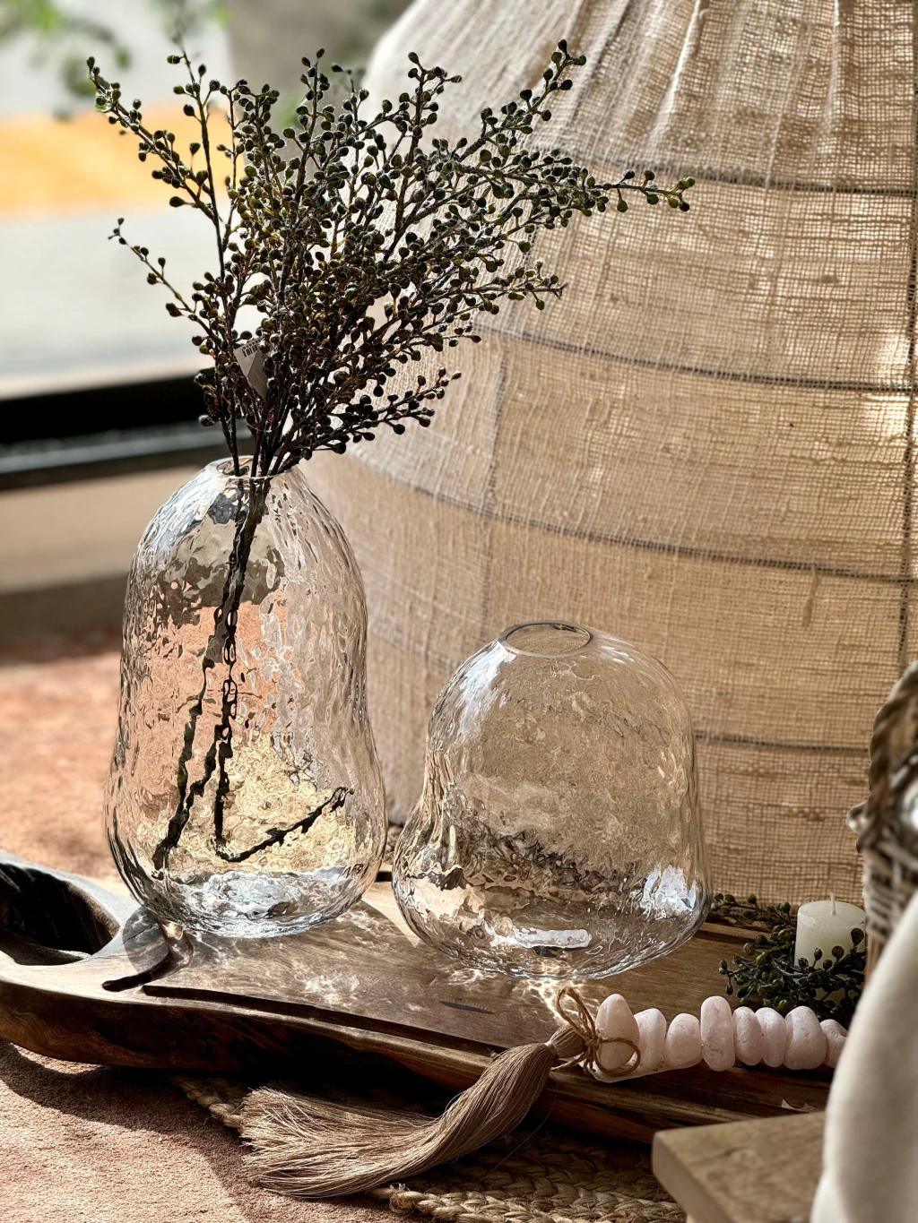 Vaso em vidro incolor, todo martelado e com design super charmoso!