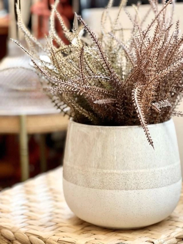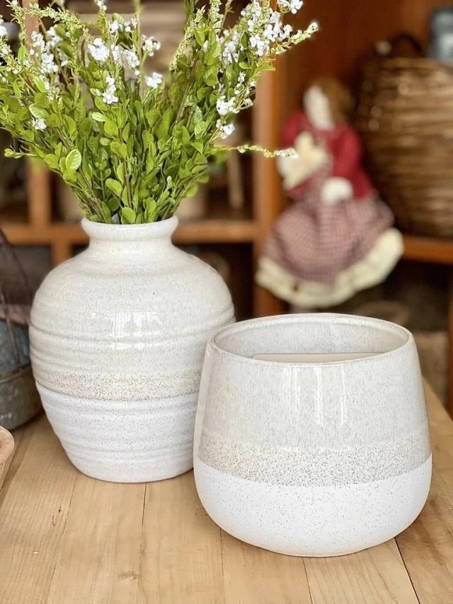 Vaso maravilhoso, em cerâmica, com acabamento que remete areia na parte inferior, esmaltado na parte superior.