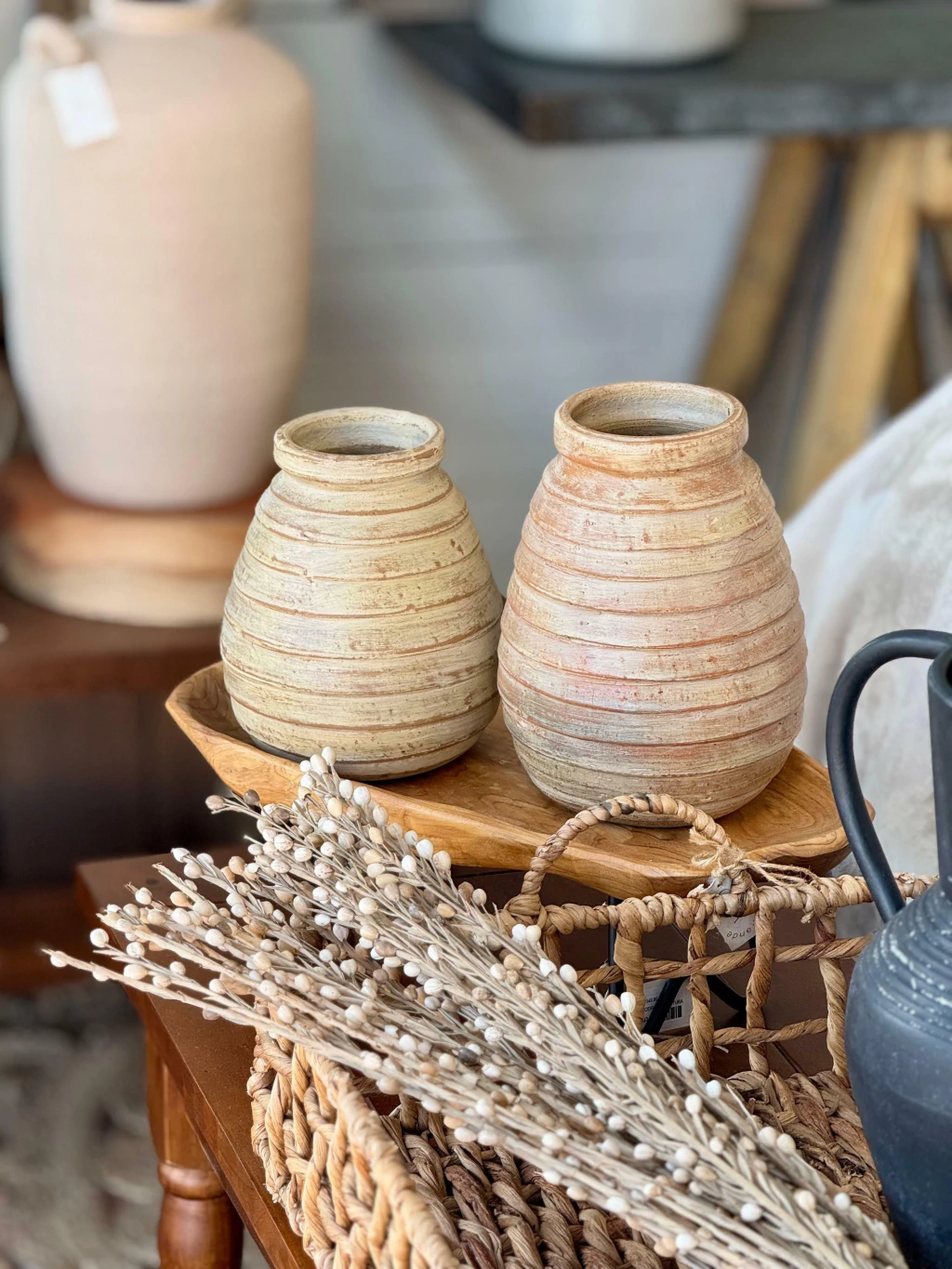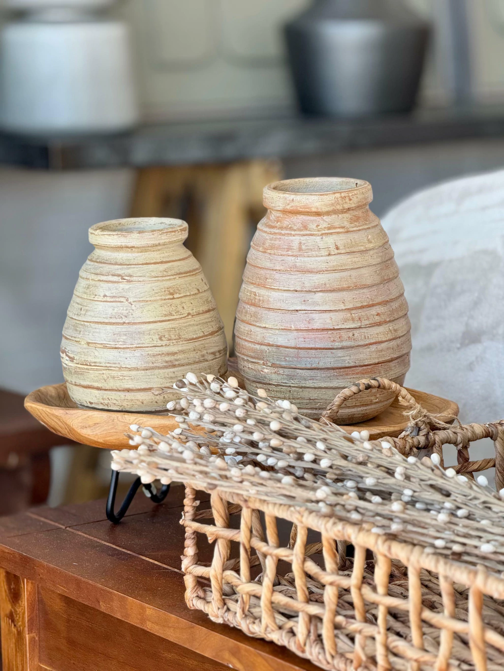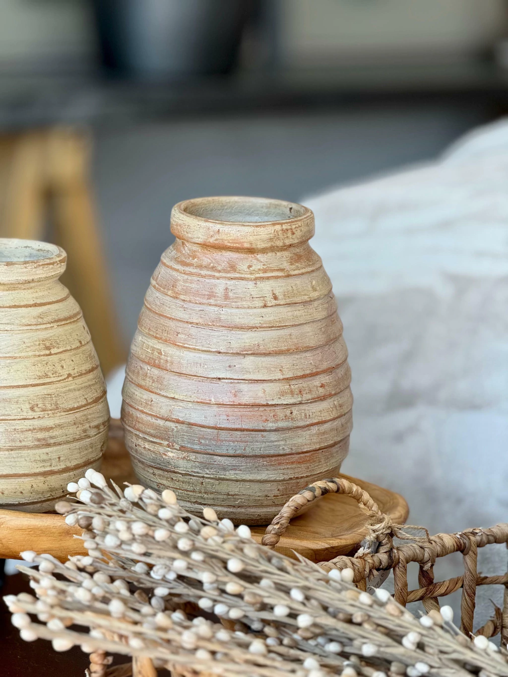 Vaso maravilhoso, em cerâmica bege com detalhes em terracota desgastado, que lembra uma linda colmeia!
