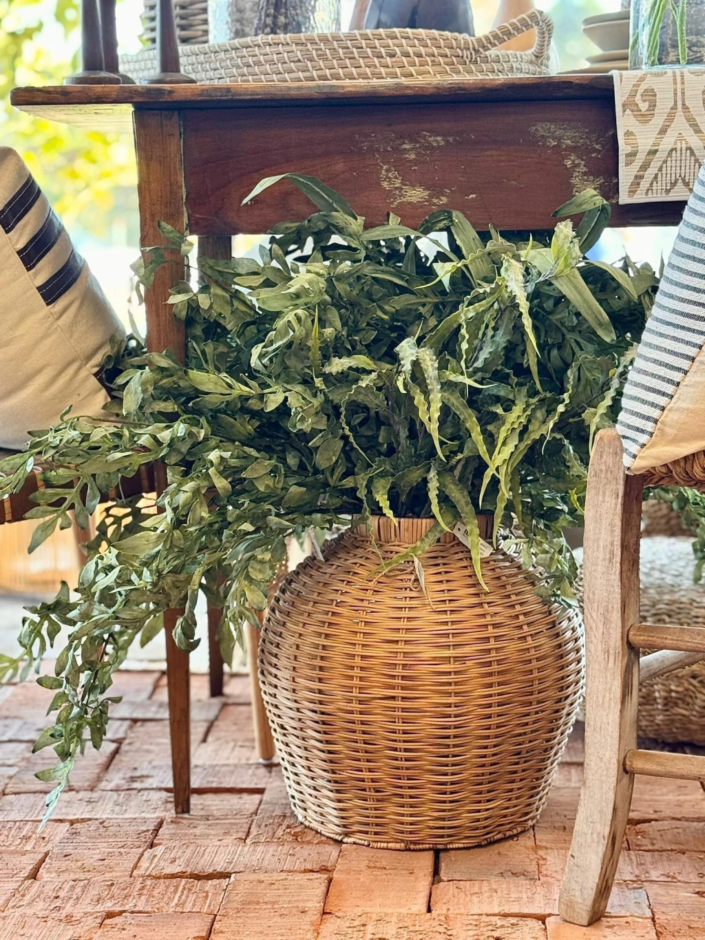 Todo feito em fibra natural, modelo de chão que também pode ser usado em cima de aparadores. Use com galhos verdes, com flores, ou sem nada mesmo. Ficará igualmente lindo!