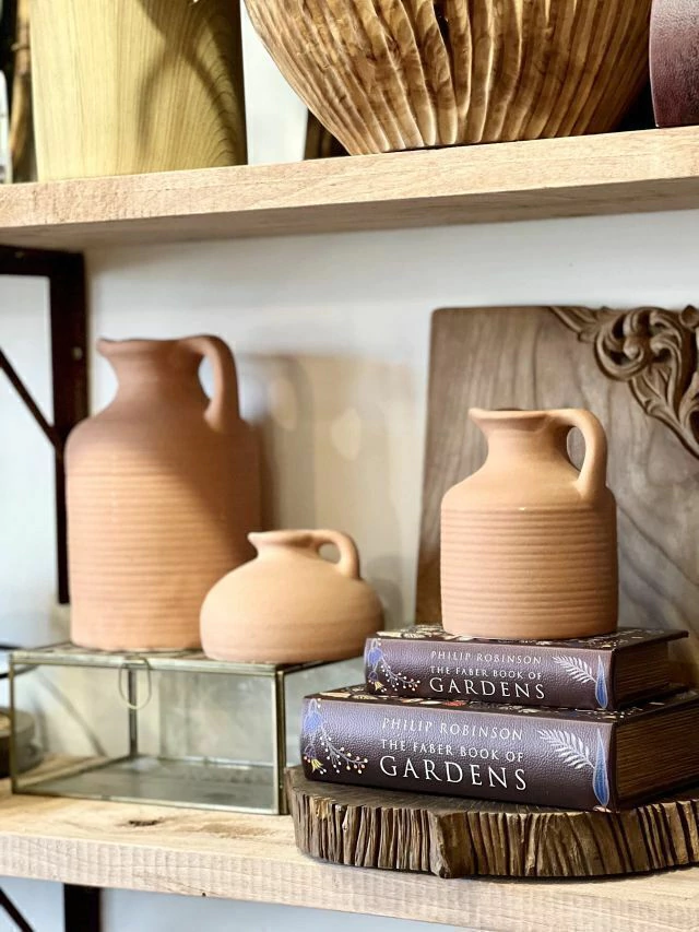 Lembra muito os vasos de barro, mas com uma textura parecida com areia.