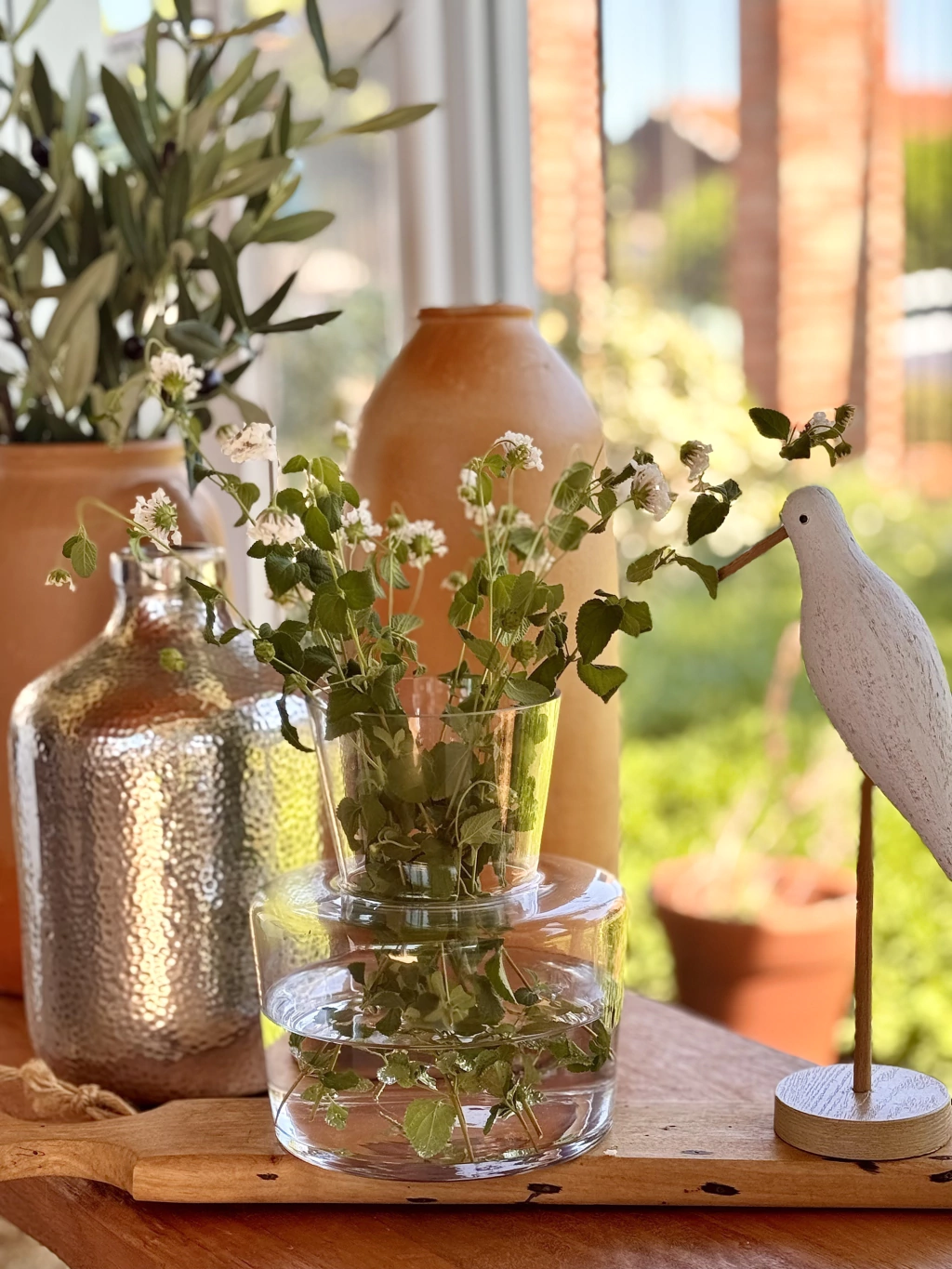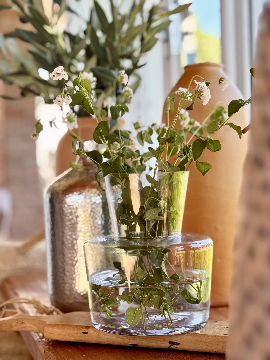 Aqui, misturei ao rústico com as flores do meu jardim , mas com costela de adão por exemplo, entraria perfeitamente em um estilo super contemporâneo.